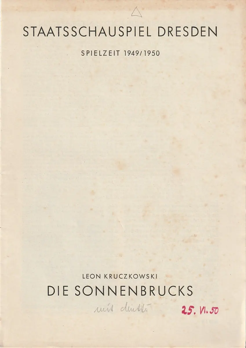 Titel:Programmheft Leon Kruczkowski DIE SONNENBRUCKS 25. Juni 1950 Spielzeit 1949 / 50