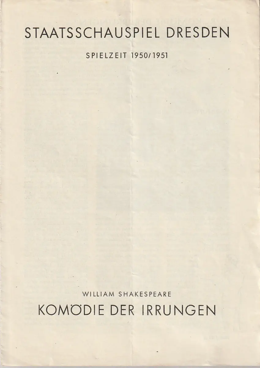 Titel:Programmheft William Shakespeare KOMÖDIE DER IRRUNGEN Spielzeit 1950 / 51