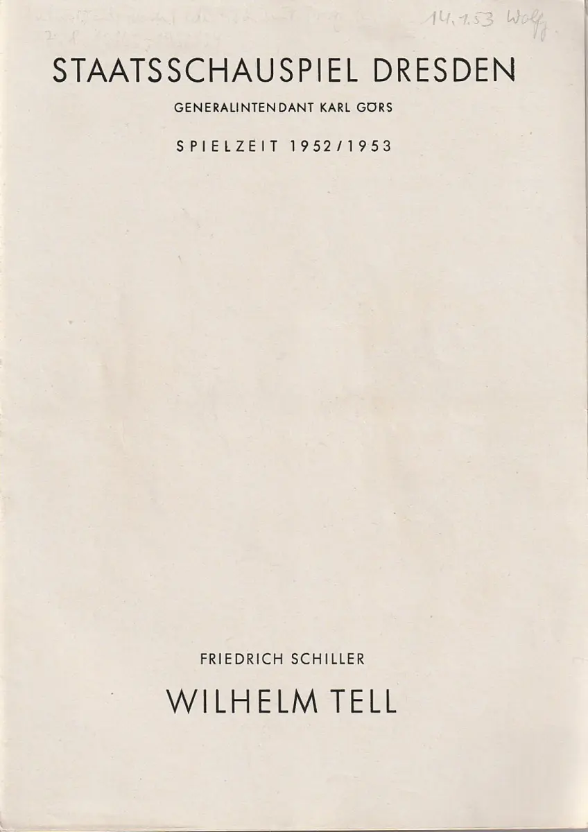Titel:Programmheft Friedrich Schiller WILHELM TELL 14. Januar 1953 Spielzeit 1952 / 53