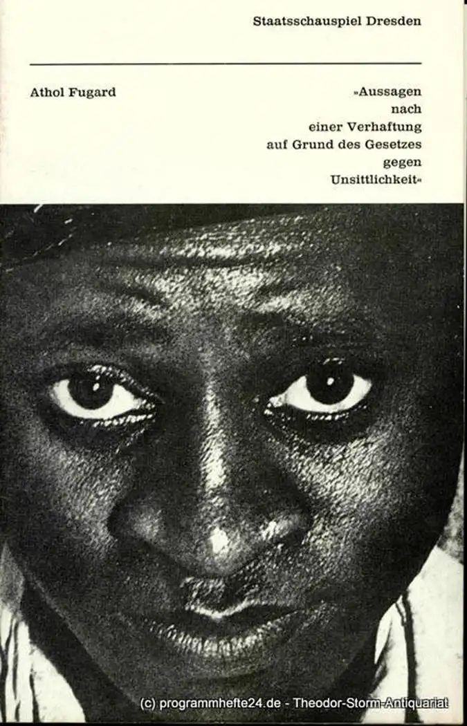 Staatsschauspiel Dresden, Staatstheater Dresden, Kleines Haus, Ute Baum, Ekkehard Walter: Programmheft Aussagen nach einer Verhaftung auf Grund des Gesetzes gegen Unsittlichkeit von Athol Fugard. Premiere am 27. Oktober 1979.