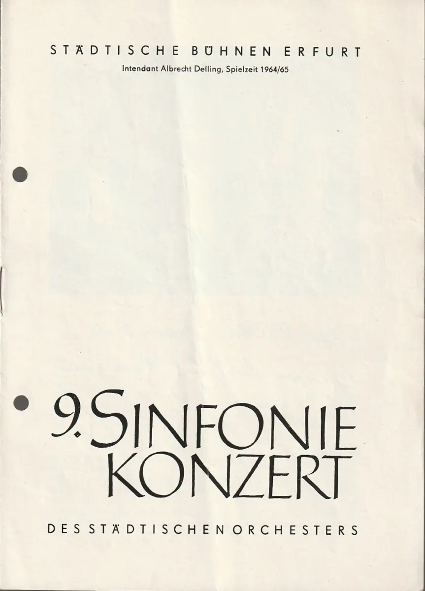 Titel:Programmheft 9. SINFONIEKONZERT DES STÄDTISCHEN ORCHESTERS ERFURT 17. Juni 1965 Spielzeit 1964 / 65