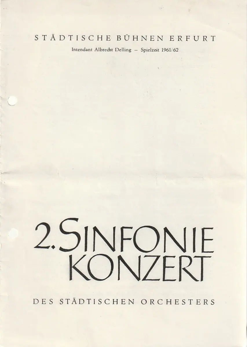 Titel:Programmheft 2. SINFONIEKONZERT DES STÄDTISCHEN ORCHESTERS ERFURT 17. November 1961 Spielzeit 1961 / 62