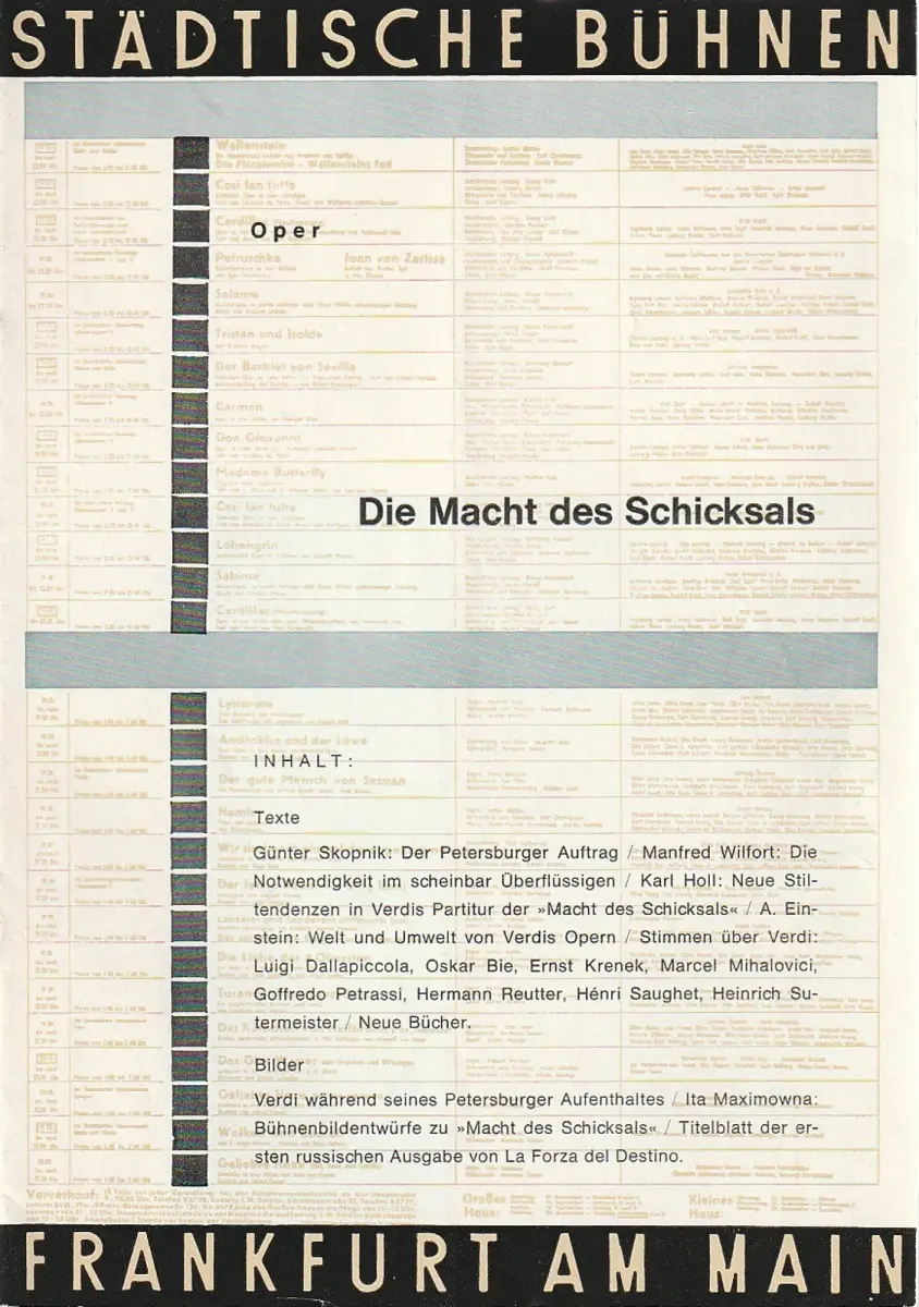 Städtische Bühnen Frankfurt am Main, Harry Buckwitz: Programmheft DIE MACHT DES SCHICKSALS Oper ca. 1963.