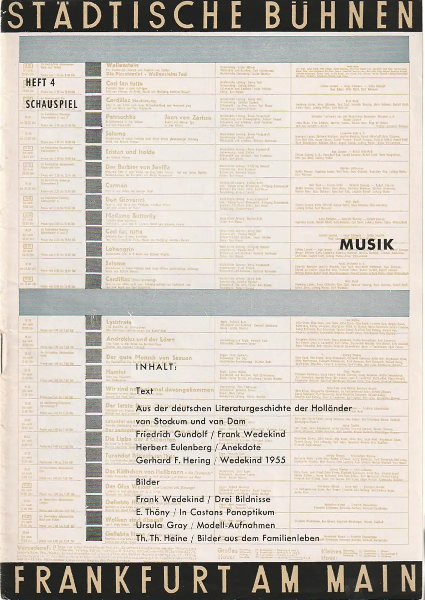 Städtische Bühnen Frankfurt am Main, Harry Buckwitz: Programmheft Frank Wedekind MUSIK Spielzeit 1955 / 56 Schauspiel Heft 4.