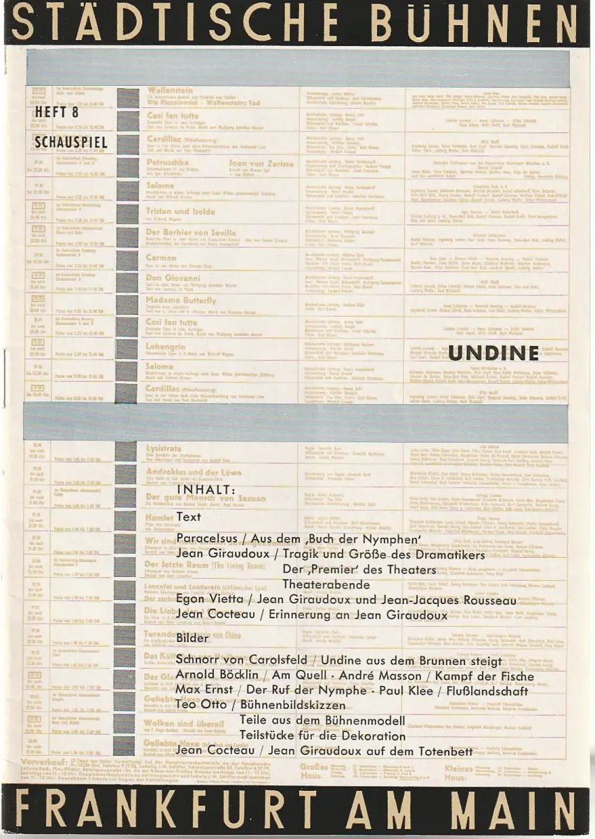 Städtische Bühnen Frankfurt am Main, Harry Buckwitz: Programmheft UNDINE Spielzeit 1957 / 58 Schauspiel Heft 8.