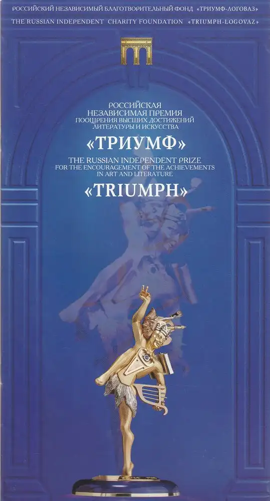 The Russian Independent Charity Foundation Triumph-Logovaz: THE RUSSIAN INDEPENDENT PRIZE for the Encouragement of the Achievements in Art and Literature TRIUMPH 1997.