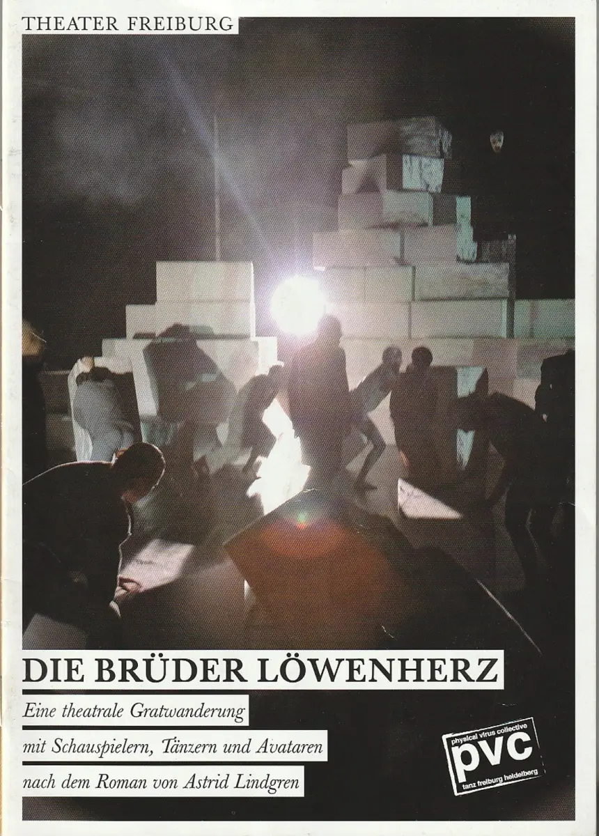 Eine theatrale Gratwanderung mit Schauspielern, Tänzern und Avataren nach dem Roman von Astrid Lindgren. Regie: Sandra Strunz. Choreographie: Graham Smith. Bühne: Tine Becker. Kostüme: Tine Becker, Carolin Schogs. Musik: Thomas Jeker. Mitwirkende: Andre Benndorff, Maria Pires, Vasco Pires, Graham Smith, Martin Weigel, Jennifer Lorenz, Gabriel von Berlepsch, Hendrik Heutmann, Frank Albrecht, Su Mi Jang, u.a. - Theaterprogramm, Opernprogramm, Ballettprogramm, Musicalprogramm, Konzertprogramm, Theatermemorabilia, Programmhefte Sammlung, deutsche Theatergeschichte.