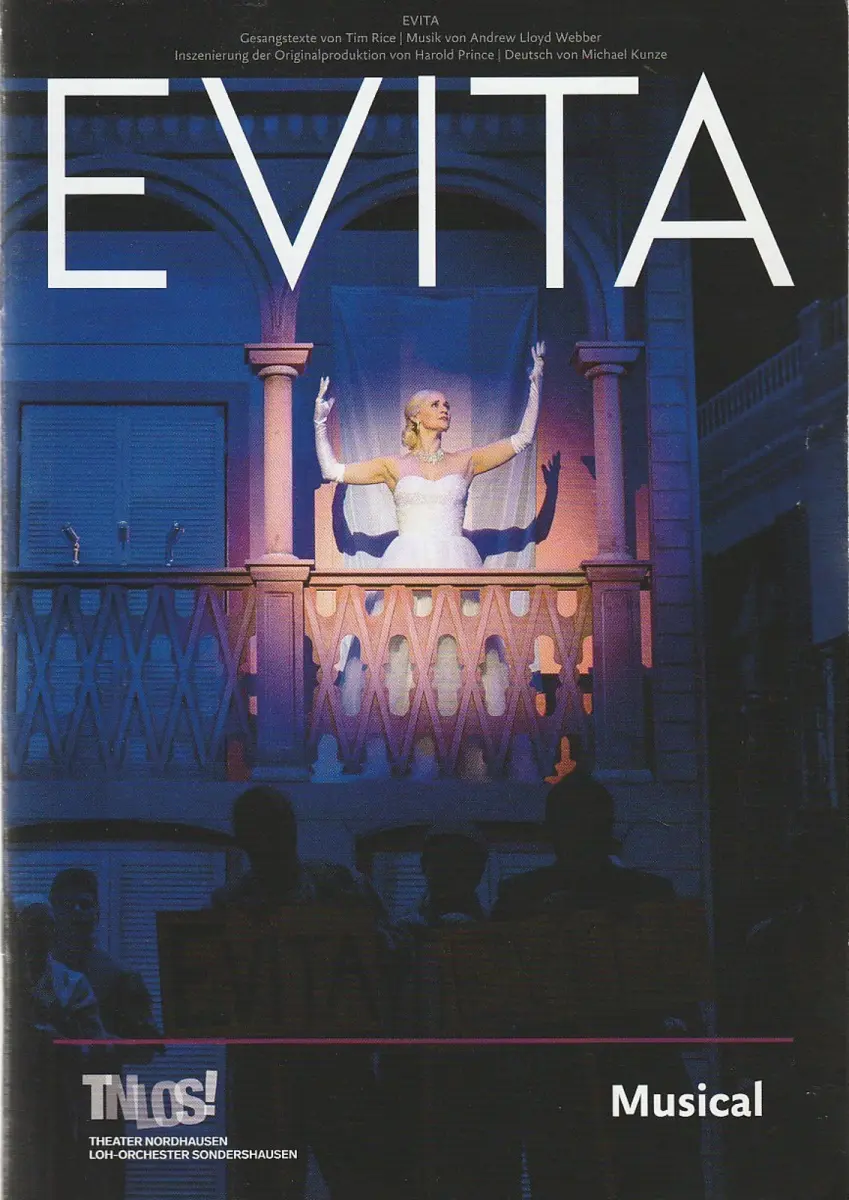 Theater Nordhausen / Loh-Orchester Sondershausen, Daniel Klajner, Juliane Hirschmann: Programmheft Andrew Lloyd Webber EVITA Premiere 29. November 2019 Spielzeit 2019 / 2020.