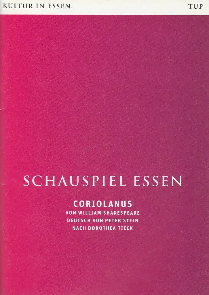 Theater und Philharmonie Essen, Schauspiel Essen, Berger Bergmann, Christian Tombeil, Vera Ring, Jan Frerichs, Birgit Hupfeld ( Szenenfotos ): Programmheft William Shakespeare CORIOLANUS Premiere 1. Oktober 2011 Grillo Theater Spielzeit 2011 / 2012.