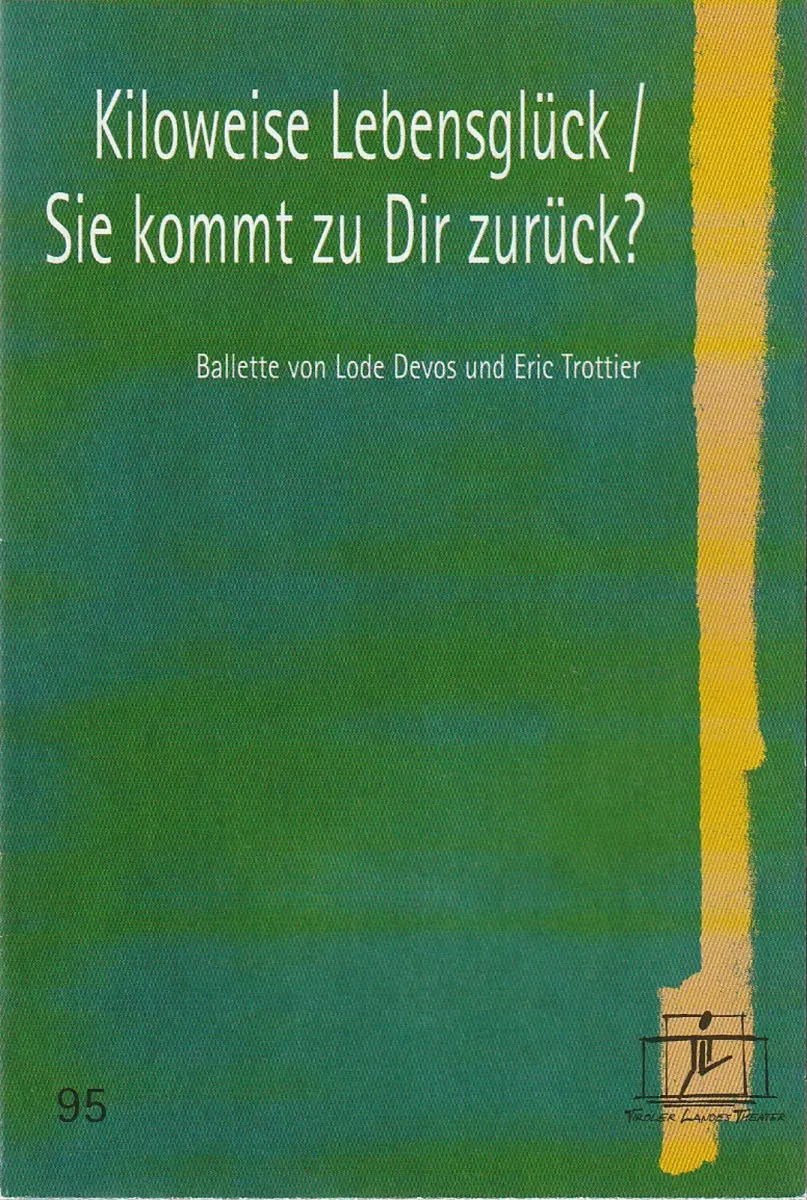 Ballette von Lode Devos und Eric Trottier. SIE KOMMT ZU DIR ZURÜCK ? : Ballett von Eric Trottier. Musik: Björk, Evanescence, Wim Mertens, Sigur Ros. Bühne und Kostüme: Julia Libiseller. Es tanzen: Daniela Indrizzi, Hlin Hjalmarsdottir, Dagmar Kostolinkova, Krisztina Pasztory, Voctor Cernac, Patrick Hullmann, u. a. KILOWEISE LEBENSGLÜCK: Ballett von Lode Devos. Musik: Bach, Mozart, spanische Pasodobles, Johann Strauß. Bühne: Julia Libiseller. Kostüme: Veronique Galland. Es tanzen: Irene Bauer, Daniela Indrizzi, Dagmat Kostolnikova, Amadeus Berauer, Frantisek Kostolnik, Bart Sluis, u. a. - Theaterprogramm, Opernprogramm, Ballettprogramm, Musicalprogramm, Konzertprogramm, Theatermemorabilia, Programmhefte Sammlung, deutsche Theatergeschichte.