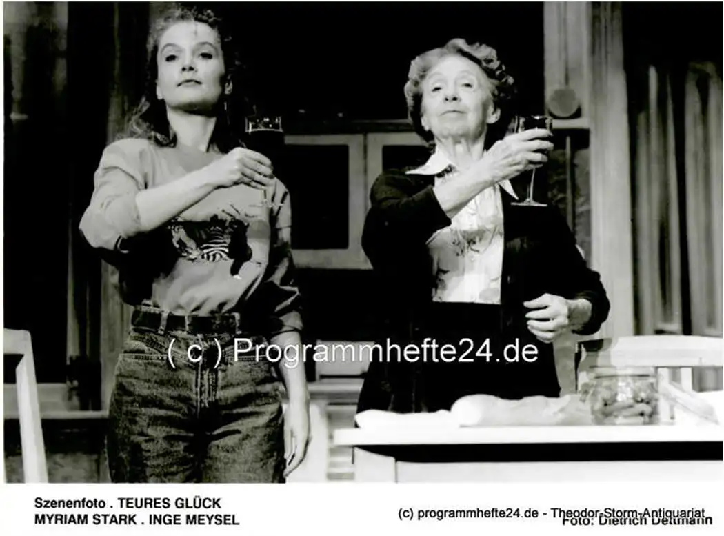 4 original Szenenfotos von Dietrich Dettmann im Format 17,8 x 24 cm: 2 x Myriam Stark und Inge Meysel, 2 x Irene Marhold und Inge Meysel. 8 Seiten Presseartikel zu Aufführung in Fotokopie. 3 Seiten Vorlagen für die Pressenotizen im Vorwege der Aufführung. 3 Seiten Vorlagen für die Pressenotizen im Vorwege der Aufführung. Zustand: Fotos sehr gut, ein Foto mit Verarbeitungshinweisen auf der Rückseite, Fotokopien gut, leichte Spuren, Pressetexte gut, Rost von Büroklammer