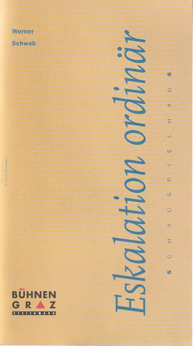 Vereinigte Bühnen Graz Steiermark Schauspiel, Gerhard Brunner, Marc Günther, Peter Fuchs: Programmheft Werner Schwab ESKALATION ORDINÄR Premiere 4. März 2000 Spielzeit 1999 / 2000.
