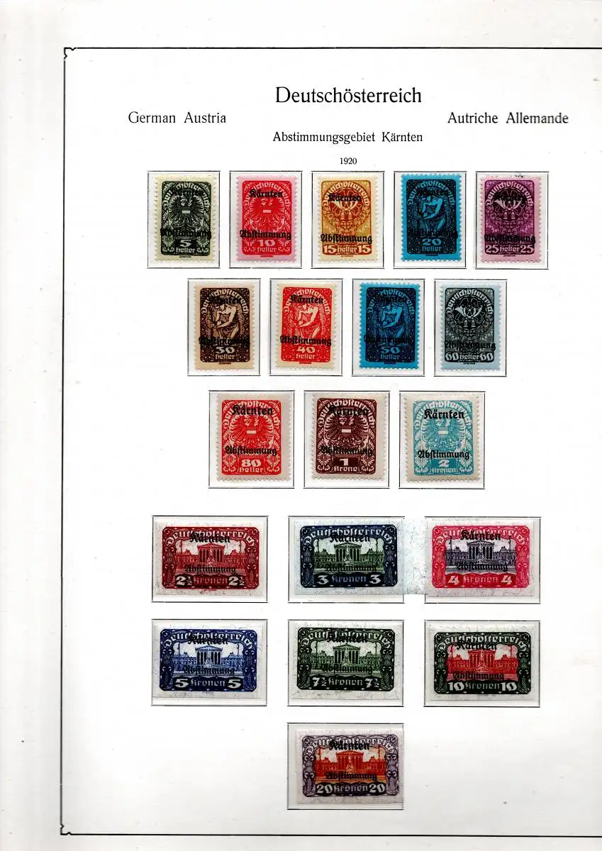 Kompletter postfrischer Satz Volksabstimmung Kärnten, Freimarken mit Aufdruck