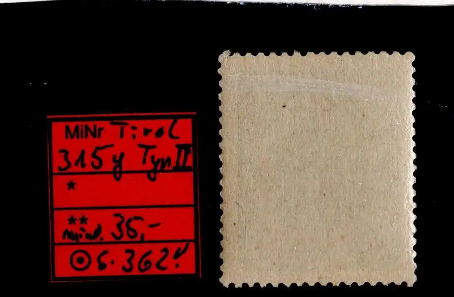 Freimarke mit Aufdruck für Tirol Nr. 315y als Typ II in postfrisch