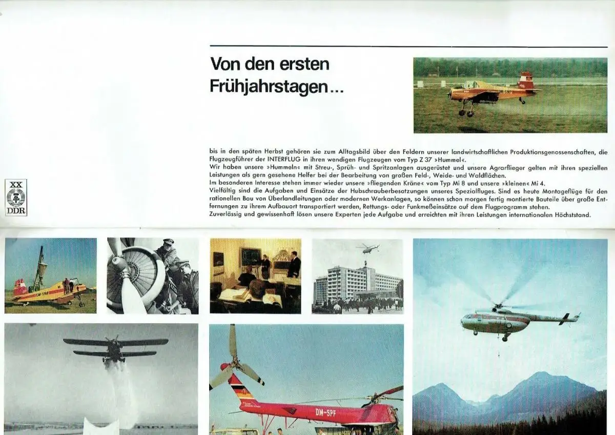 guter bis sehr guter Zustand, geringe Gebrauchs- und Alterungsspuren: Deckelecke rechts unten geknickt - teils gering knittrig - Seiten sauber und ordentlich - letzte Textseite mit kleinem Dreiangel im unteren Rand - kleinere Randblessuren, Gestatten Sie uns bitte, daß wir Ihnen INTERFLUG, die Fluggesellschaft der Deutschen Demokratischen Republik etwas näher vorstellen, ihre Leistungen und vor allem ihre Menschen, die für all das mit verantwortlich zeichnen, was INTERFLUG heute ist. Von der ersten Stunde an wurde unser erfolgreicher Aufbau von der großzügigen Unterstützung durch die Völker der Sowjetunion begleitet. Während vor rund 15 Jahren an den Verkehrsfliegerschulen der Sowjetunion unsere ersten Flugzeugbesatzungen auf sowjetischen Kolbenmotorflugzeugen vom Typ IL 14 ihre Ausbildung erhielten, flogen vorübergehend erfahrene Besatzungen der AEROFLOT die IL 14 für den zivilen Luftverkehr der DDR. Heute, im 20. Jahr unserer Republik, befinden sich moderne sowjetische 5trahlverkehrsflugzeuge vom Typ TU 134 im Liniendienst unserer Fluggesellschaft. Der herzliche Händedruck, der anläßlich der Auslieferung der ersten TU 134 an die INTERFLUG zwischen ihrem Generaldirektor und dem übergebenden sowjetischen Kommandanten ausgetauscht wurde, ist ein Symbol für den Dank und die aufrichtige Freundschaft zwischen unseren beiden Völkern. - Sicherheit durch Können - Präzision, die entscheidet (liegt in den Händen unserer Mitarbeiter) - Zu Wasser, zu Lande und in der Luft (Freizeitgestaltung für Betriebsangehörige) - Unser Service beginnt nicht erst mit dem Flug ... (Stadtbüros, Agenturen, Verträge) - Gute Betreuung ist bei uns üblich - Und wenn Sie und besuchen (auf unseren Flughäfen und in der DDR) - Von den ersten Frühjahrstagen ... (Z 37 "Hummel" in der Landwirtschaft) - Start frei in das dritte Jahrzehnt unserer Republik, kartoniert, ca. 42 x 18 (!!!), (aufgeschlagen ca. 42 x 36), 16 Seiten mit zahlreichen Bildern