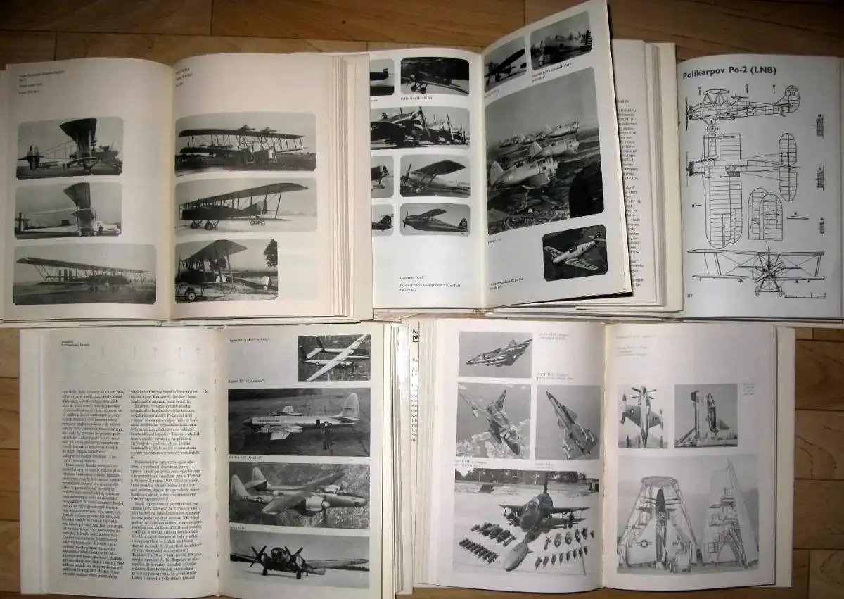 guter bis sehr guter Zustand, geringe Gebrauchs- und Alterungsspuren: Schutzumschläge teils gering defekt - Seiten sauber und ordentlich, in tschechischer Sprache - Band: Letadla první světové války / Flugzeuge des Ersten Weltkriegs - Band: Mezi dvěma světovými válkami / Zwischen den beiden Weltkriegen - Band: Letadla druhé světové války / Flugzeuge des Zweiten Weltkriegs - Band: Období 1945-1950 / Zeitraum 1945-1950 - Band: Letadla současnosti / Derzeitige Flugzeuge"V roce 1961 vydalo nakladatelství Naše vojsko moji knihu „Vojenská letadla". Pracoval jsem na jejím rukopisu dlouho a řadu let předtím jsem sbíral materiál a podklady, které se staly jejím základem. Měl jsem z této knihy radost, protože uzavírala' určitou etapu mé publicistické práce a pokoušela se shrnout v jeden celek pohled na dlouhé období vývoje vojenské letecké techniky. Zdá se, že tehdy byli spokojeni také čtenáři, protože kniha byla zakrátko rozebrána a byl o ni zájem i v zahraničí. Ještě dnes mi ze řady zemí docházejí dopisy čtenářů, kteří mi sdělují, že knihu viděli u svých přátel a rádi by ji vlastnili. A naši zájemci o letectví mne nepřestávají nabádat, abych knihu vydal znova. Dorůstá nám další generace mládeže, která o vývoji letectví ve starých časech nemá téměř žádné znalosti. Leč dost sebechvály. Kniha byla snad ve své době zajímavá a informace v ní obsažené byly relativně úplné. Avšak vznikala zhruba v polovině padesátých let a byla sestavena z mozaiky drobných informací, konfrontovaných s dosažitelnou literaturou. V tehdejší době se ve světě teprve formovala letecká historická literatura, jejíž exploze nastala pak počátkem šedesátých let a trvá prakticky dosud. Dnes vycházejí na světlo podrobnosti a souvislosti, o nichž nikdo před deseti léty neměl tušení. Množství, podrobnost a přesnost informací dosahují nebývalé míry, ale je zde zároveň nebezpečí určitého přesycení. Nezbývá, než věnovat se jen celkem malému úseku; na podrobné poznání celku nestačí již síly průměrného čtenáře a snad ani jeho finanční prostředky. Záplava monografií na dílčí témata mne upevnila v názoru, že způsob, jaký jsem volil v prvním vydání, byl správný. Abychom postihli celek, není možno zacházet do podrobností, je nutné nastiňovat rámcový rozvoj druhů, kategorií a skupin letadel, nelze jít od typu k typu, od výrobce k výrobci. Je však nutné doplnit mezery v informacích, opravit důsledně omyly vzniklé tradováním nesprávných údajů z nespolehlivých pramenů a vůbec konfrontovat všechny dřívější poznatky s dnešními přesnými informacemi. Uvítal jsem proto rozhodnutí nakladatelství vydat knihu znovu a v nové, bohatší úpravě. Uvolnilo mi to prostor, který byl před deseti léty značně omezený, což se na mnoha místech knihy nepříznivě projevovalo. Mohl jsem nyní nejen rozšířit textovou a obrázkovou část zabývající se letouny, ale také doplnit dvě samostatné části věnované vojenskému využití balónů a vzducholodí. Dnes tedy dostáváte do rukou první část z připravovaného čtyřsvazkového díla „Vojenská letadla". Poznáte v ní počátky vojenských letadel a jejich vývoj od nejstarší doby až do konce první světové války. Druhá část obsáhne rozmezí mezi oběma světovými válkami, zatím co třetí svazek bude věnován pouze druhé světové válce. Čtvrtá kniha se pokusí shrnout rozvoj vojenské letecké techniky od nástupu reaktivního pohonu až po naše dny. Dalo to všechno mnoho práce, nejen při samotné přípravě rukopisu, ale i při ...", Leinen, ca. 17 x 24,5, ca. 1472 Seiten mit zahlreichen Bildern