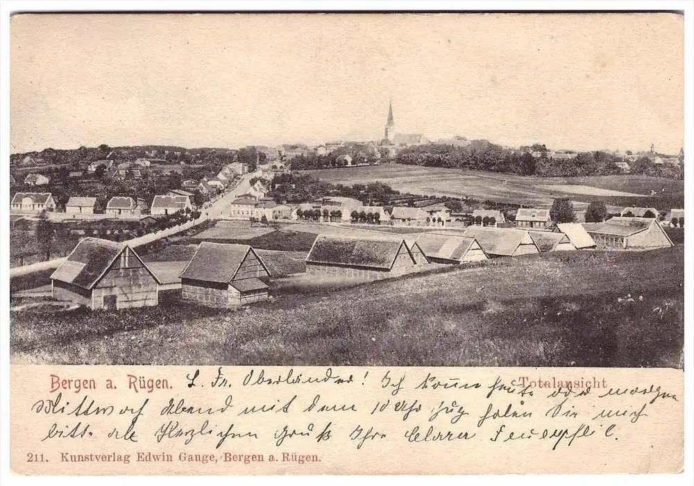 alte AK , Bergen auf Rügen , 1908 ? , Totalansicht , Mecklenburg !!!
