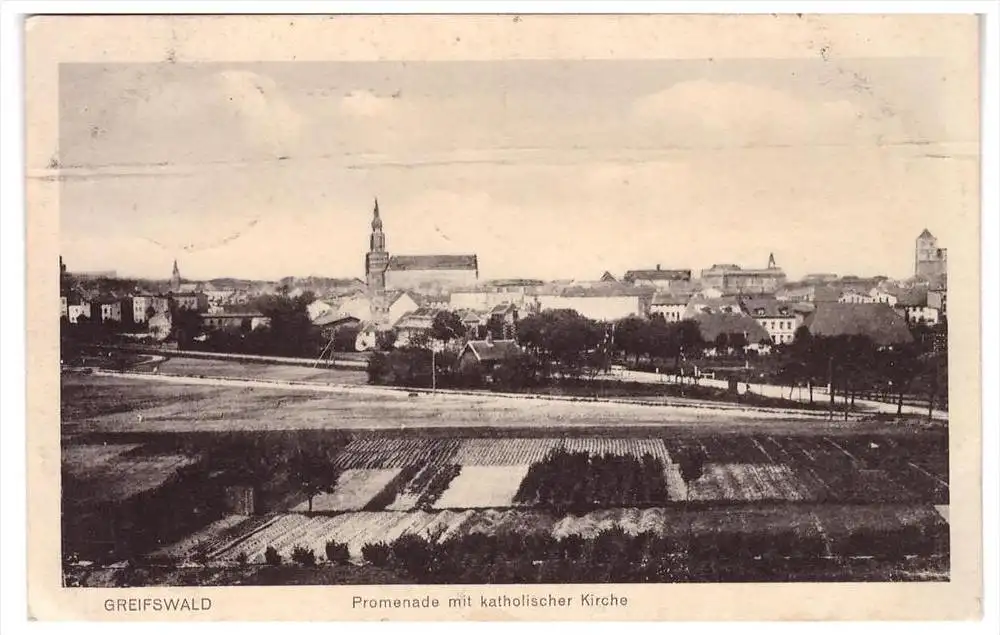 alte AK , Greifswald , 1917 , Promenade mit katholischer