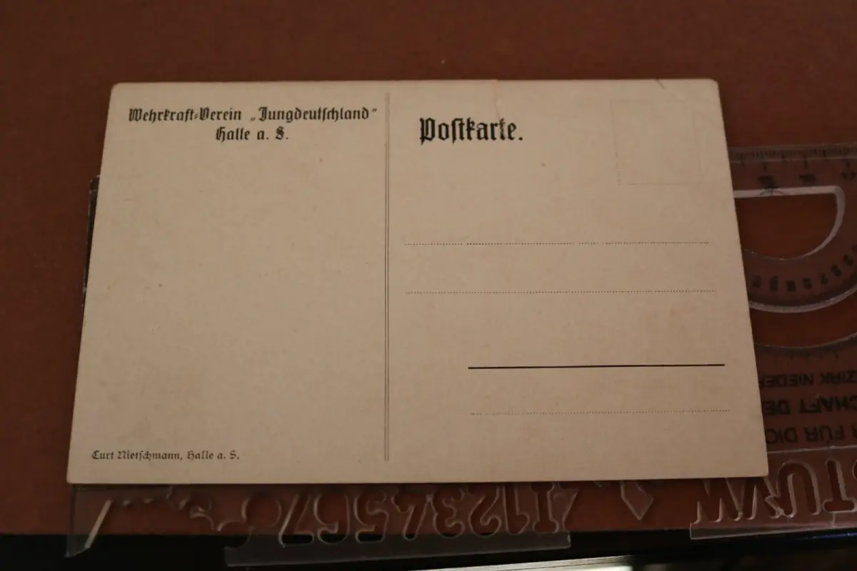Biete hier eine tolle alte Künstlerkarte - Uniformen - Wehrkraft-Verein Jungdetuschland Halle a. an
