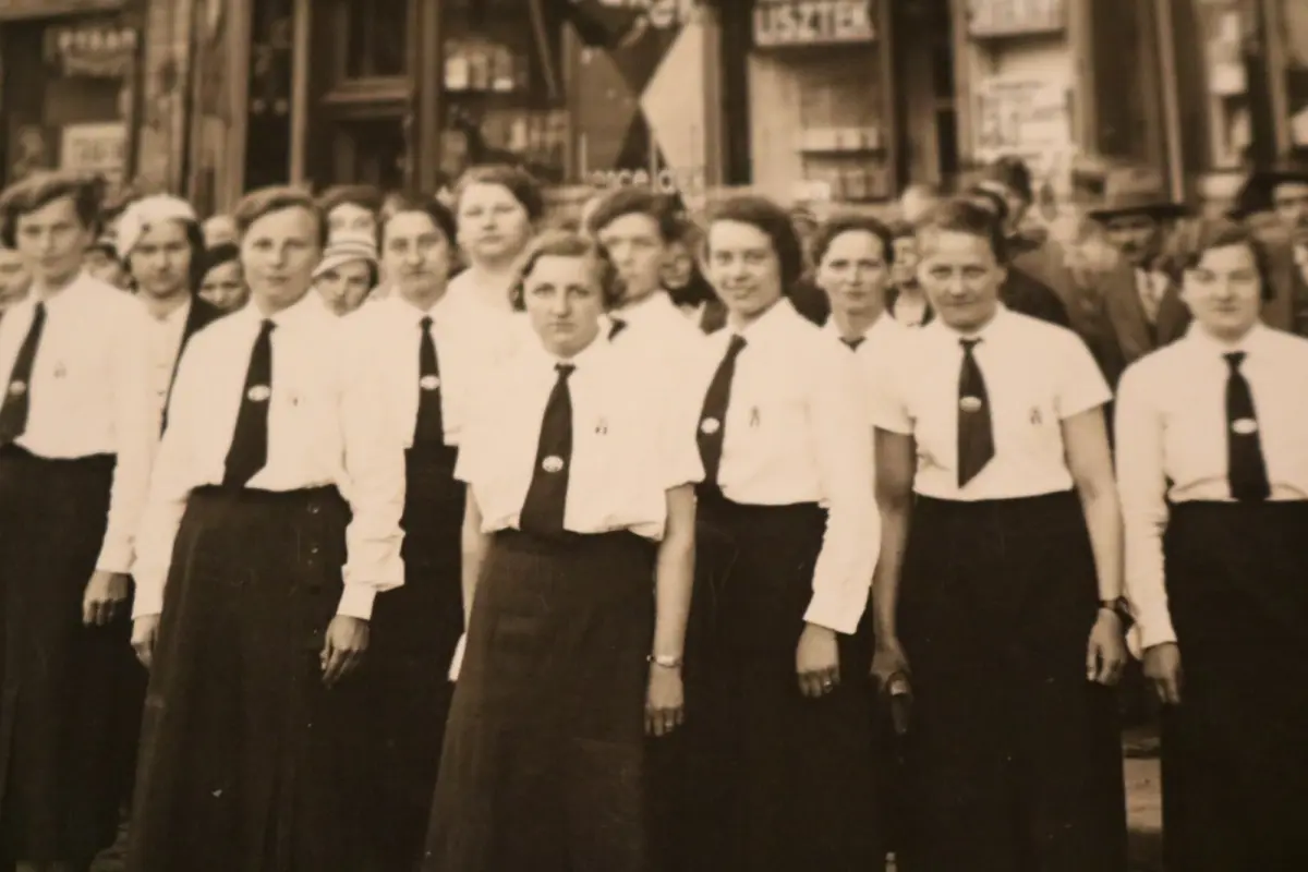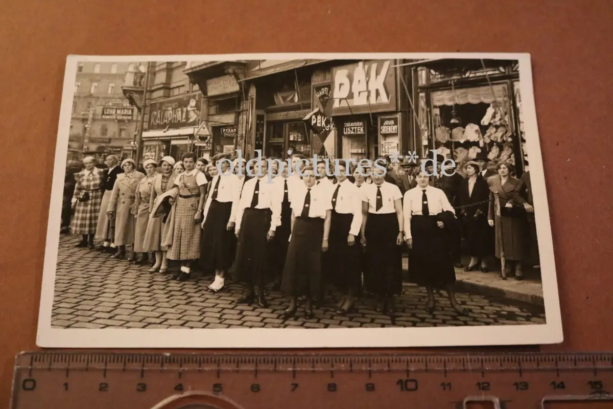 Biete hier ein tolles altes Foto - BDM Mädels ?? in Ungarn Besuch ? Strassen Geschäfte