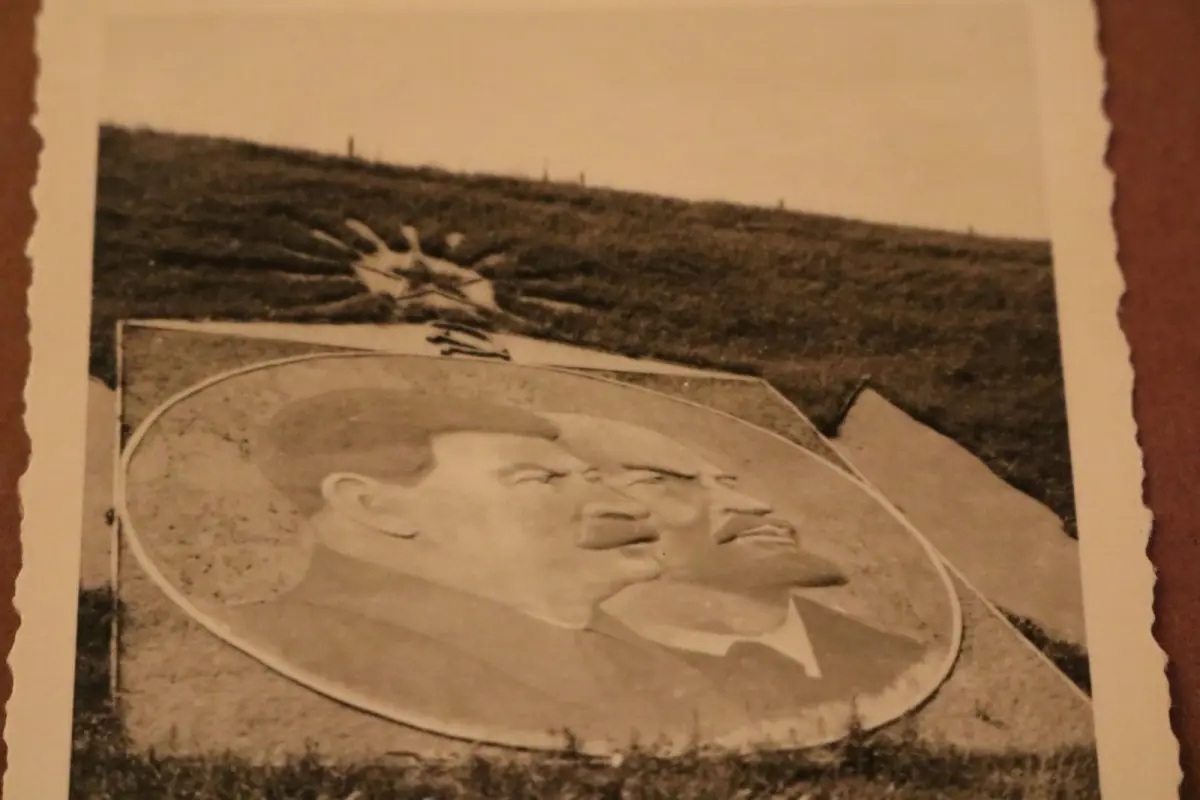 Biete hier ein tolles altes Foto Flughafen Rollbahn Schytomyr - Portrait Stalin und Lenin