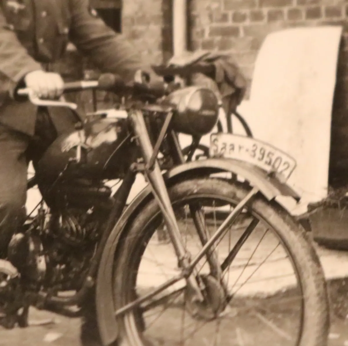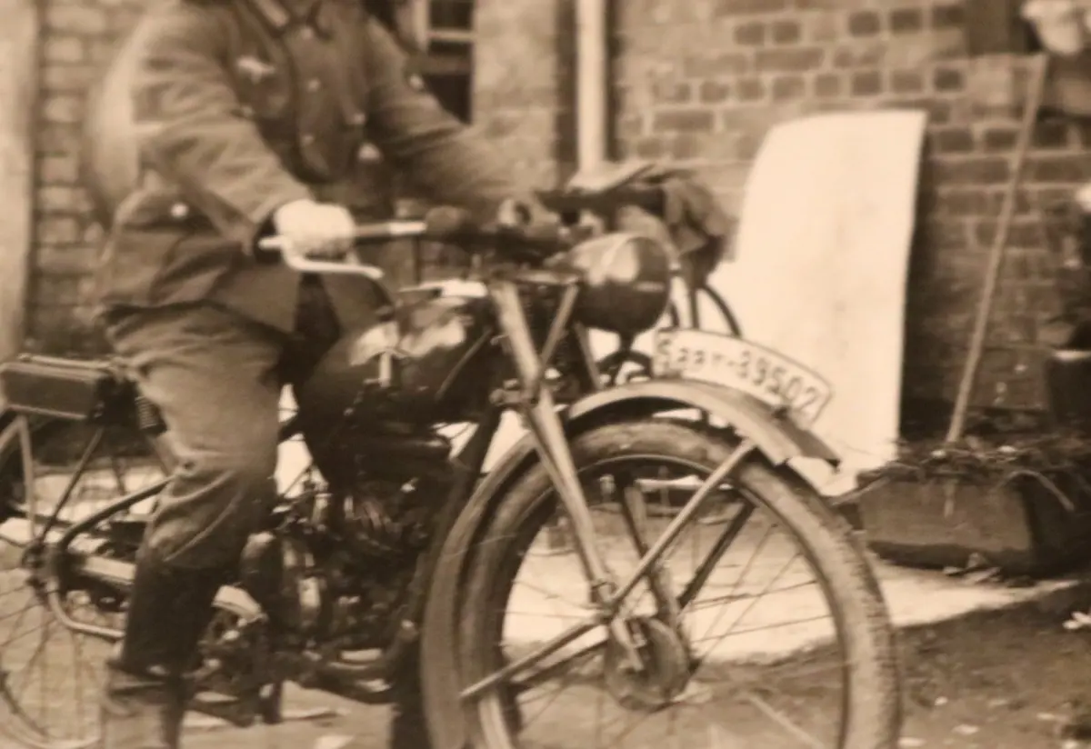 Biete hier ein tolles altes Foto Soldat mit Motorrad Wanderer - Kennzeichen Saar
