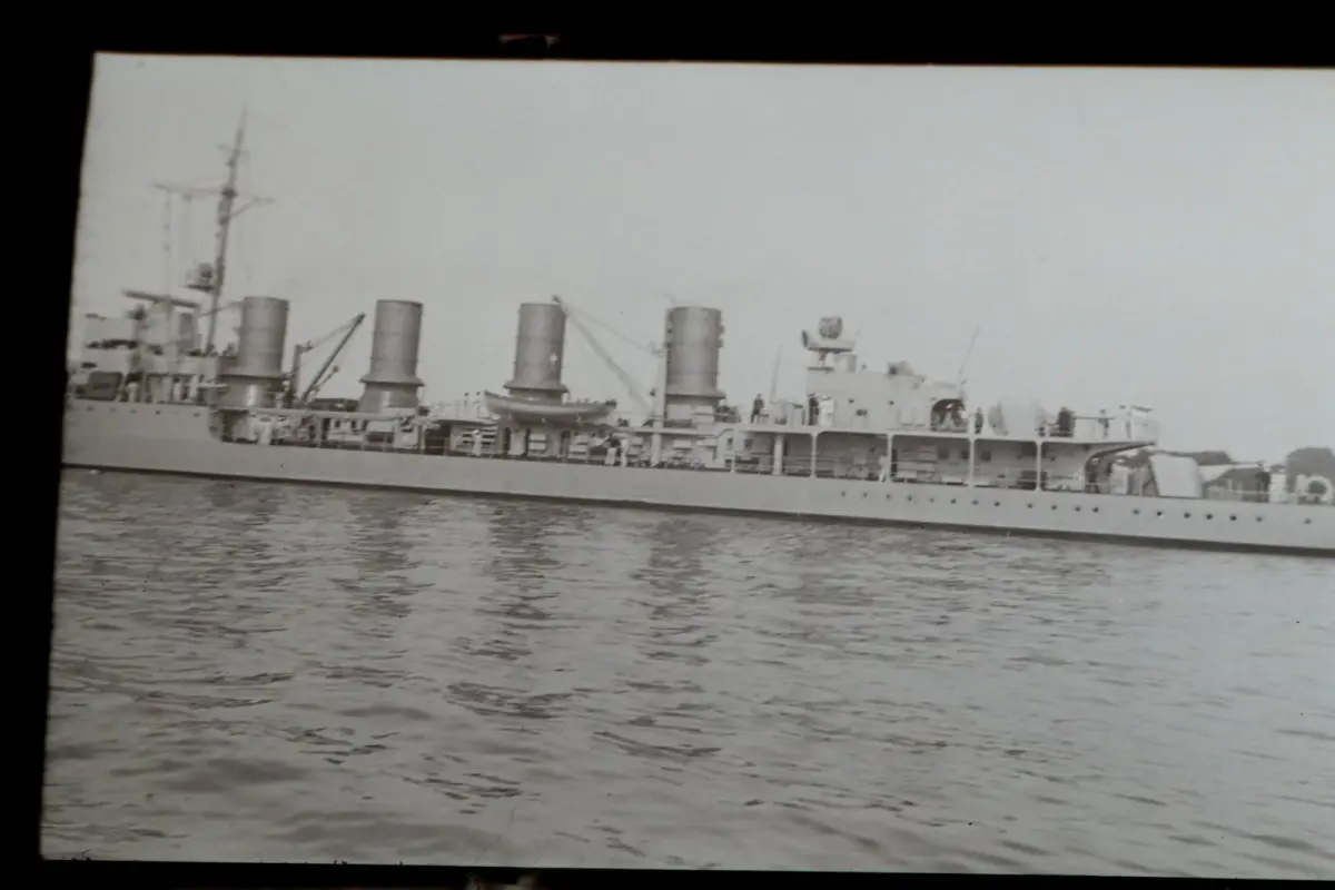 Biete hier ein tolles altes Negativ - unbekanntes Kriegsschiff - vier Schornsteine ?30-40er Jahre an
