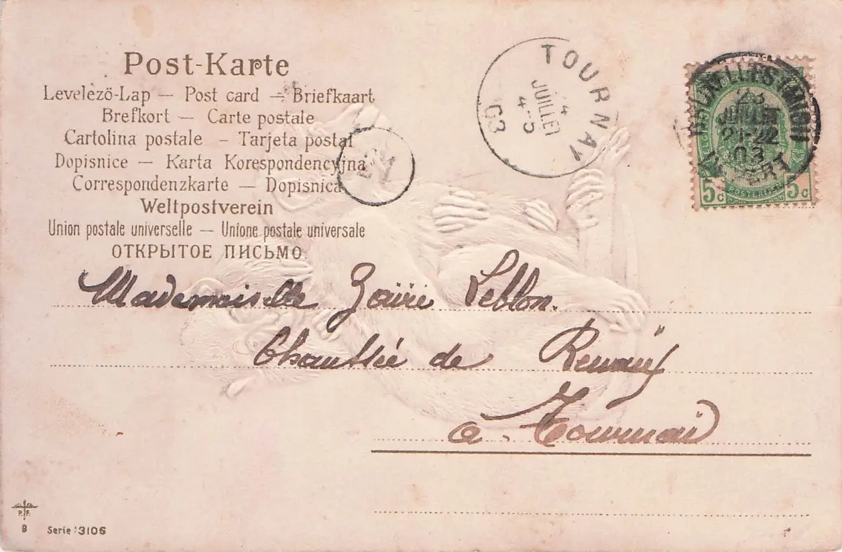 zwei Affen, . Es wurde am 15. Juli 1903 in Brüssel verschickt. -798192