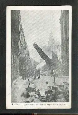 Lille. Sprengung eines Hauses wegen Einsturzgefahr. - Feldpost 1915. (Frankreich).