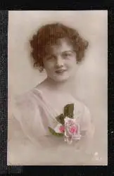 Frau mit Blumen. Fotokarte color. - Nicht gelaufen. (Schöne Frauen)