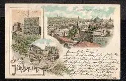 Jerusalem, Souvenir de. La Tour David, Mar Saba, Mont des Oliviers. - Gelaufen 1899. (Israel, Palästina). .