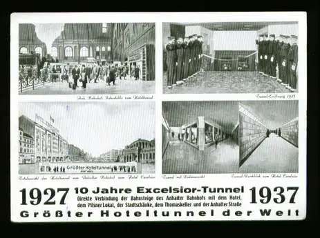 Berlin. 1927 10 Jahre Exelsior Tunnel Direkte Verbindung der Bahnsteige des Anhalter Bahnhofs mit dem Hotelm dem Pilsner Lokal, der Stadtschänke, dem Thomaskeller und der Anhalter Strasse - Nicht gelaufen. (NPLZ 10000) Posiadamy rowniez konto zlotowkowe w Polsce.