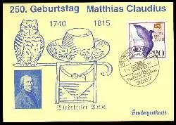 x03241; Geburtstag Matthias Claudius.250. - Gelaufen 1990. (Personen, Philatelie, Sonderstempel, Maximumkarte)