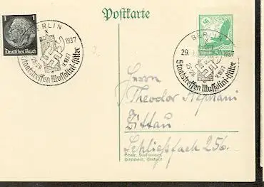 x16200; NS-Zeit: Staattreffen Mussolini Hitler 25-29.9.1937 Berlin. Mi512+529. Auf Karte..