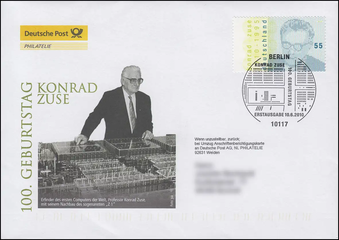 2802 Ingenieur und Unternehmer Konrad Zuse, Schmuck-FDC Deutschland exklusiv