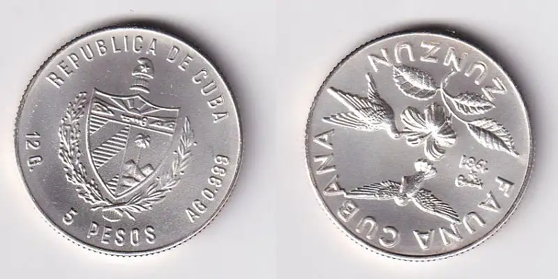 5 Pesos M?nze Kuba Cuba 1981 Fauna Cubana Zunzun Kolibri Stgl. (167345)