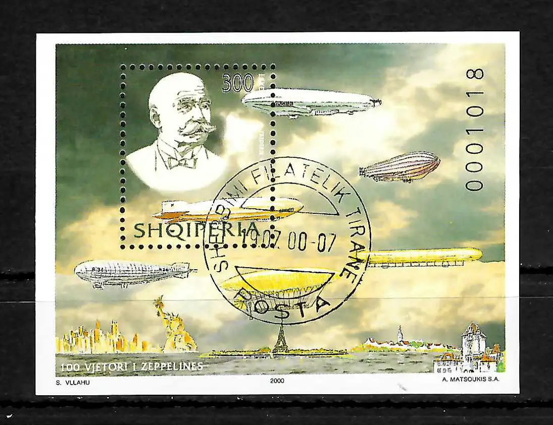 Albanien 2000: 100 Jahre Graf Zeppelin, #2774, Block #128, gestempelt