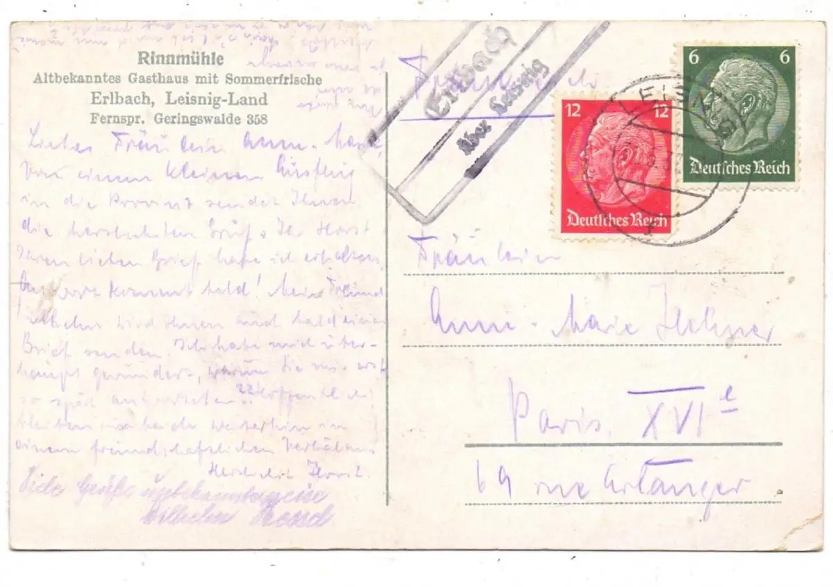 0-7241 COLDITZ - ERLBACH, Rinnmühle, Landpost-Stempel, 1933, kl, Knick