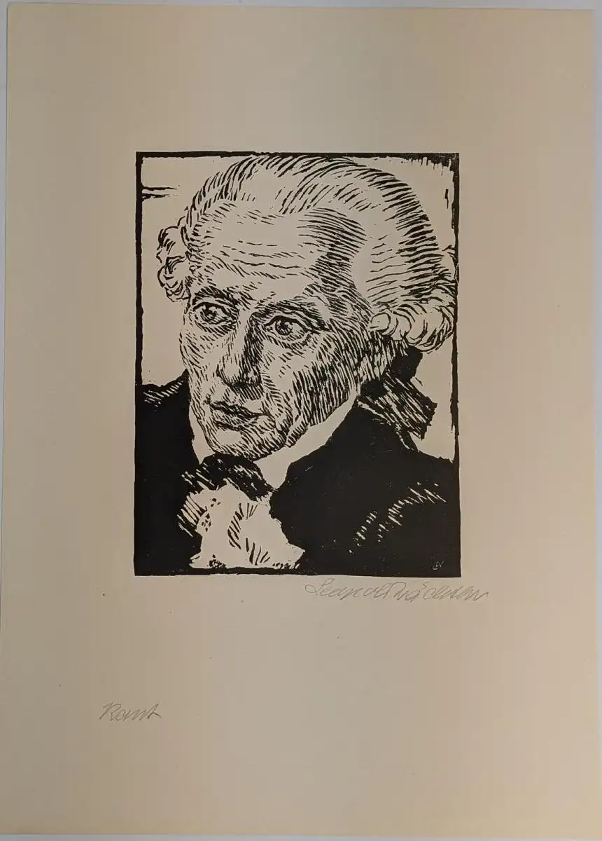 Bemerkungen: Zustand: Gut. Die Mappe weist altersbedingt ein paar minimale Abriebstellen auf. Die Grafiken befinden sich in gutem Zustand. // Die Drucke haben alle ein Maß von 35,0 x 25,0 cm und sind unterhalb linksseits betitelt und direkt rechts unter dem Motiv handschriftlich signiert. Zu sehen sind u.a. die Portraits von Kant, Leo Tolstoi, Thomas Mann, Pestalozzi, Lessing, Theodor Storm, Gottfried Keller, Heinrich Heine. Leopold Wächtler (18961988) war ein deutscher Maler, Zeichner und Radierer, bekannt für seine fein gearbeiteten Porträts in Kupferstich und Radierung. Er stellte historische Persönlichkeiten wie Bach, Nietzsche und Wagner detailreich und charakterstark dar. Sein Stil war realistisch und traditionsverbunden, besonders geschätzt bei Sammlern grafischer Kunst.