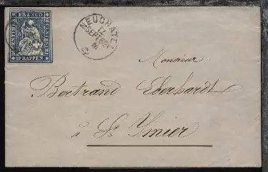 10 Rp. Sitzende Helvetia auf Bf. ab Neuchatel 12 SEPT. 62 nach St. Iwier