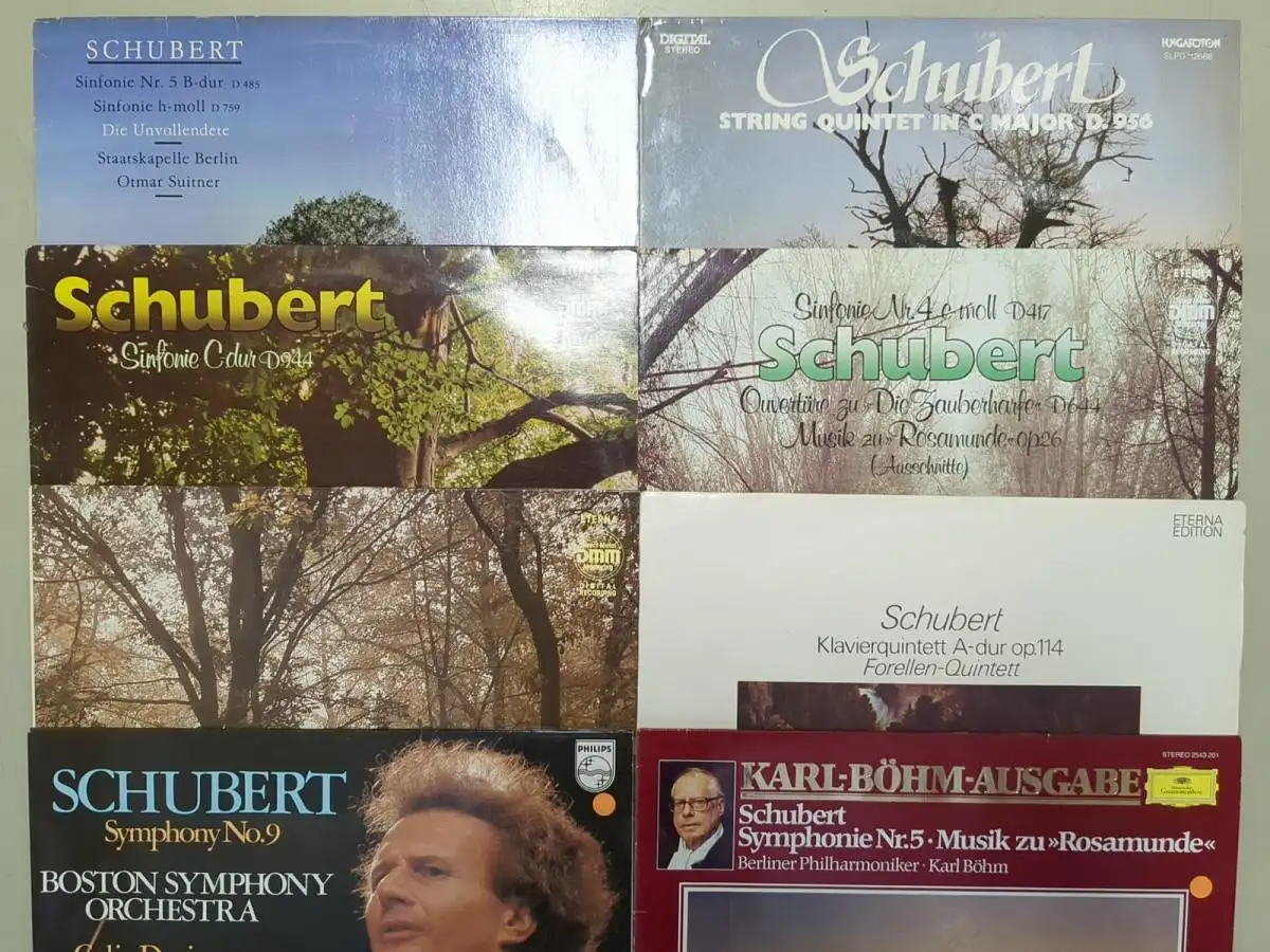 Artikeldetails10 Schallplatten 12" LP Franz Schubert Rosamunde, Symphony No. 9, Klavierquintett A-dur op. 114, Sinfonie Nr. 3, Sinfonie Nr. 4 u.a.Tschaikowski, Peter