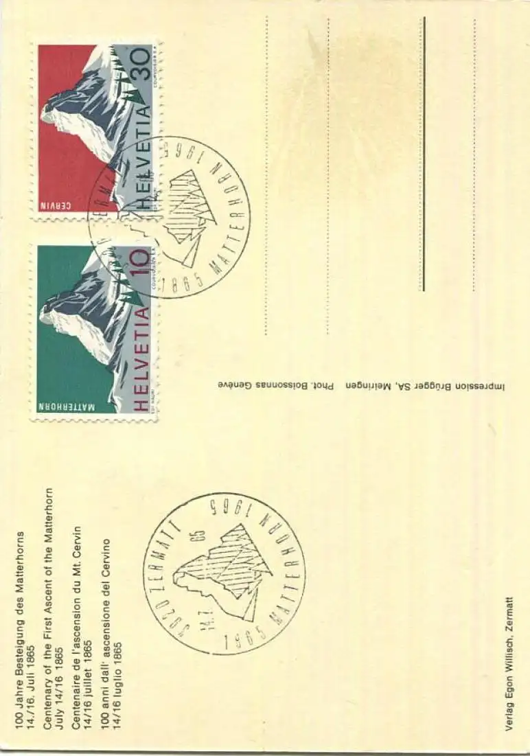 100 Jahre Besteigung des Matterhorns 14./16. Juli 1865 - Edward Whymper - AK Grossformat