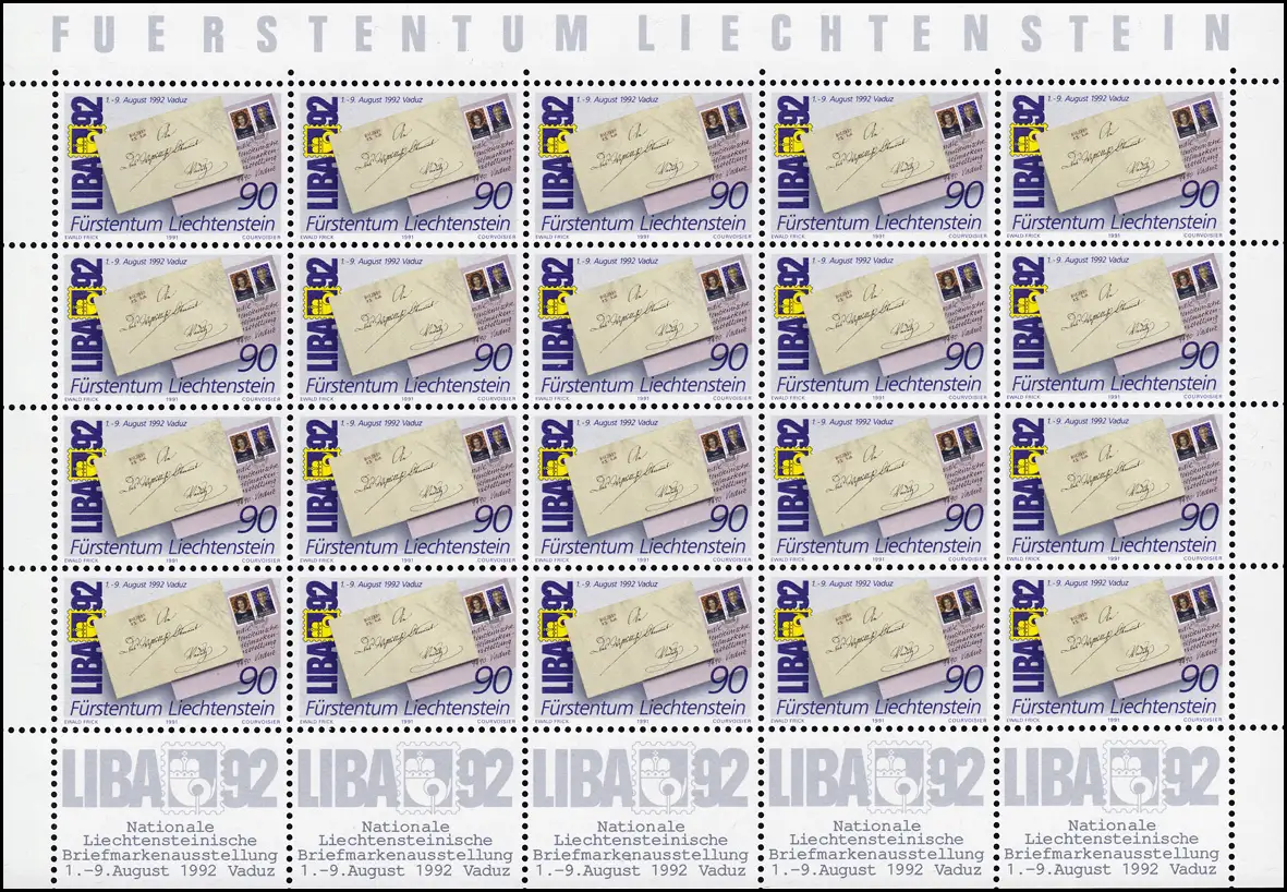 1026 Exposition nationale des timbres LIBA 1992, Petite feuille **