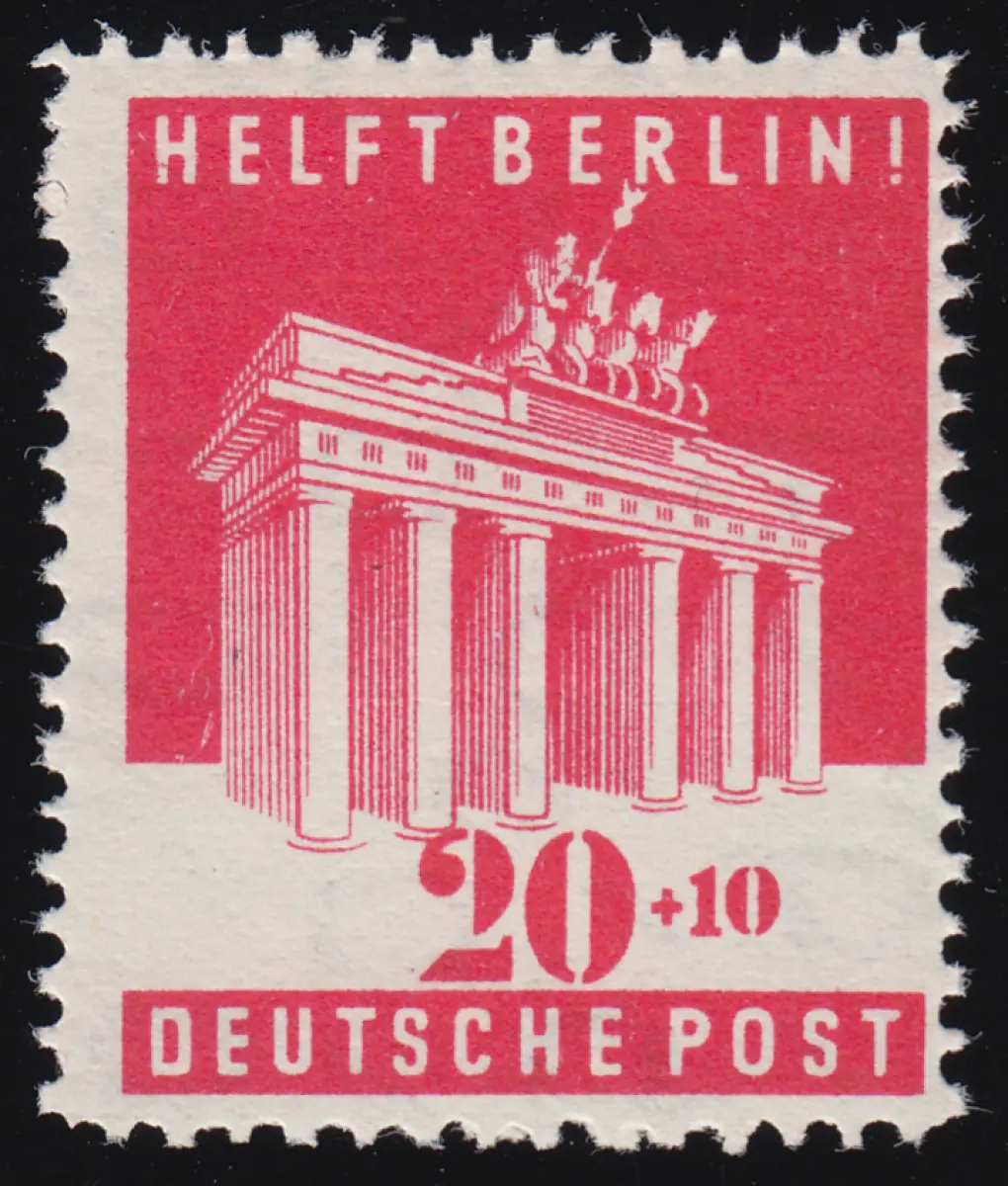 102I Berlin-Hilfe 20 Pf Zähnung E - je mit PLF I gebrochene Torlinie, **