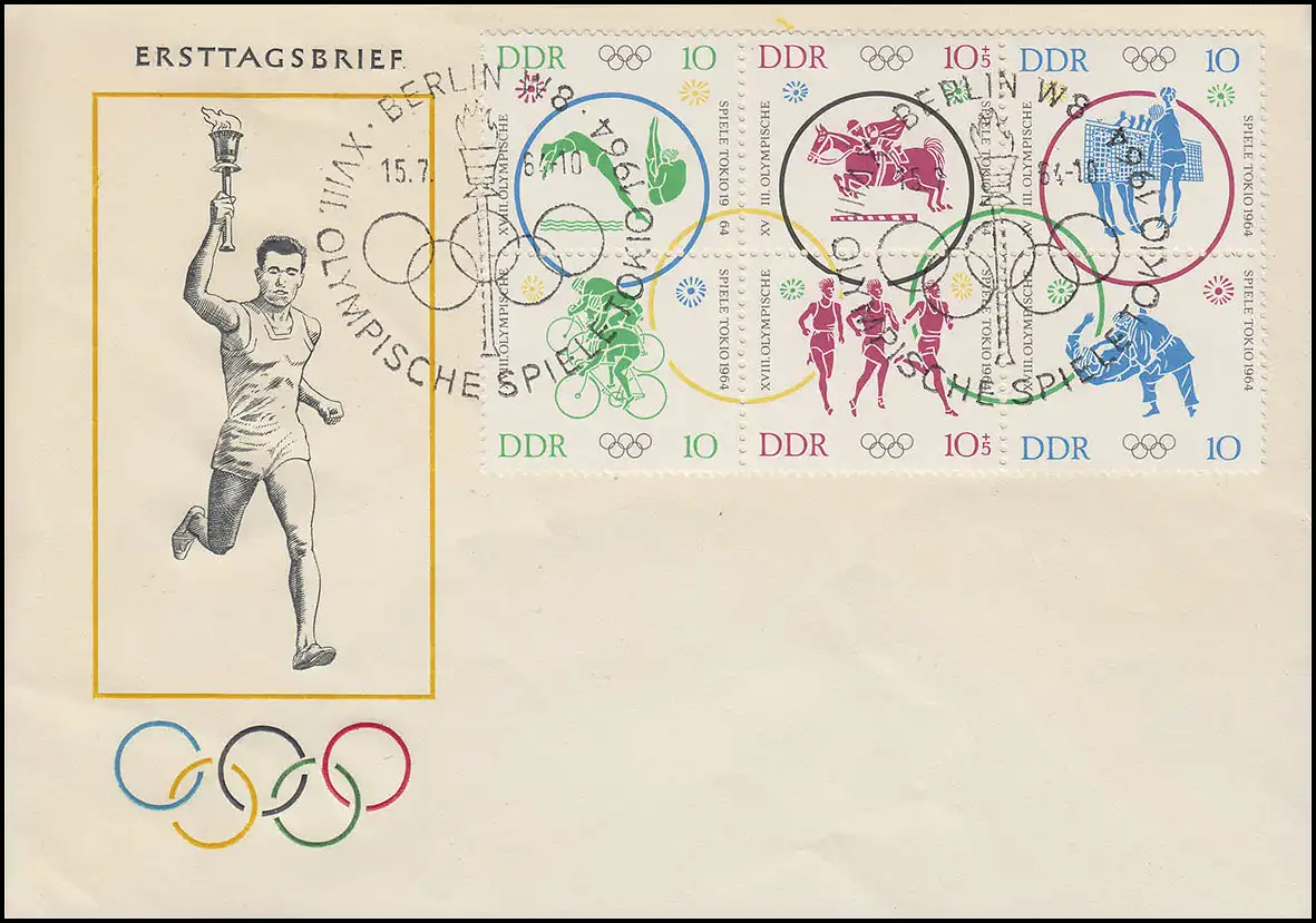 1039-1044 Olympiade Tokyo Compresse Bloc six sur le FDC de bijoux ESSt Berlin