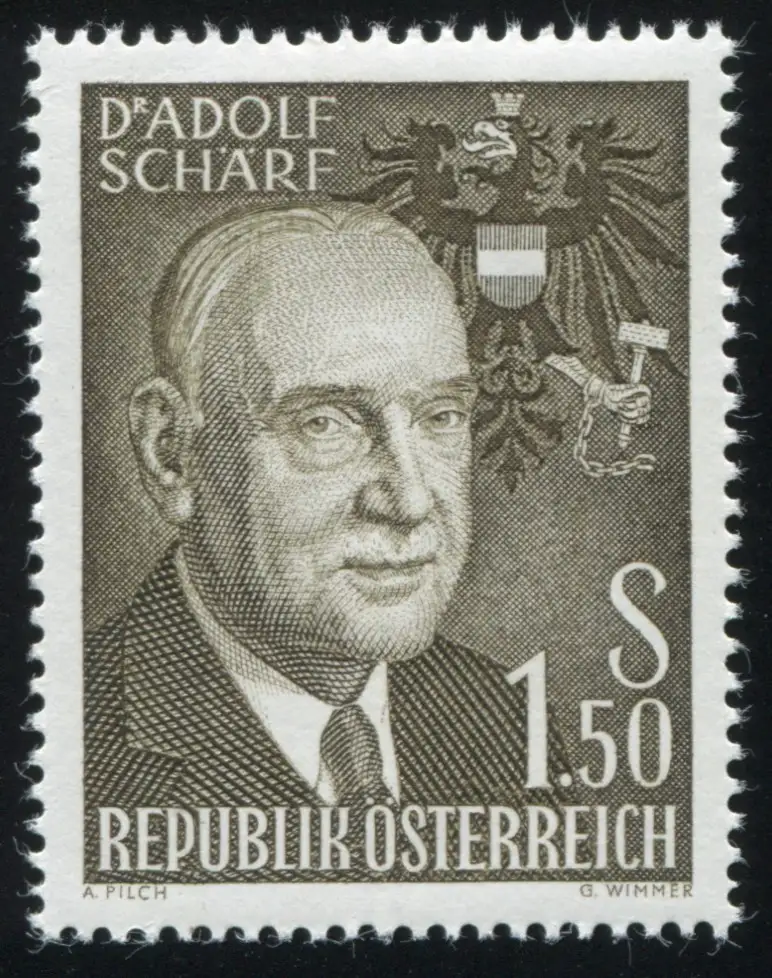 1075I Adolf Schärf avec plume courte PLF I à droite, cases 2 et 7, **