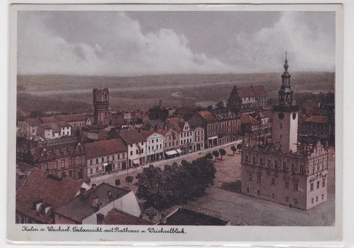 12093 Ak Kulm a. Weichsel Chełmno Teilansicht Rathaus u. Weichselblick 1941