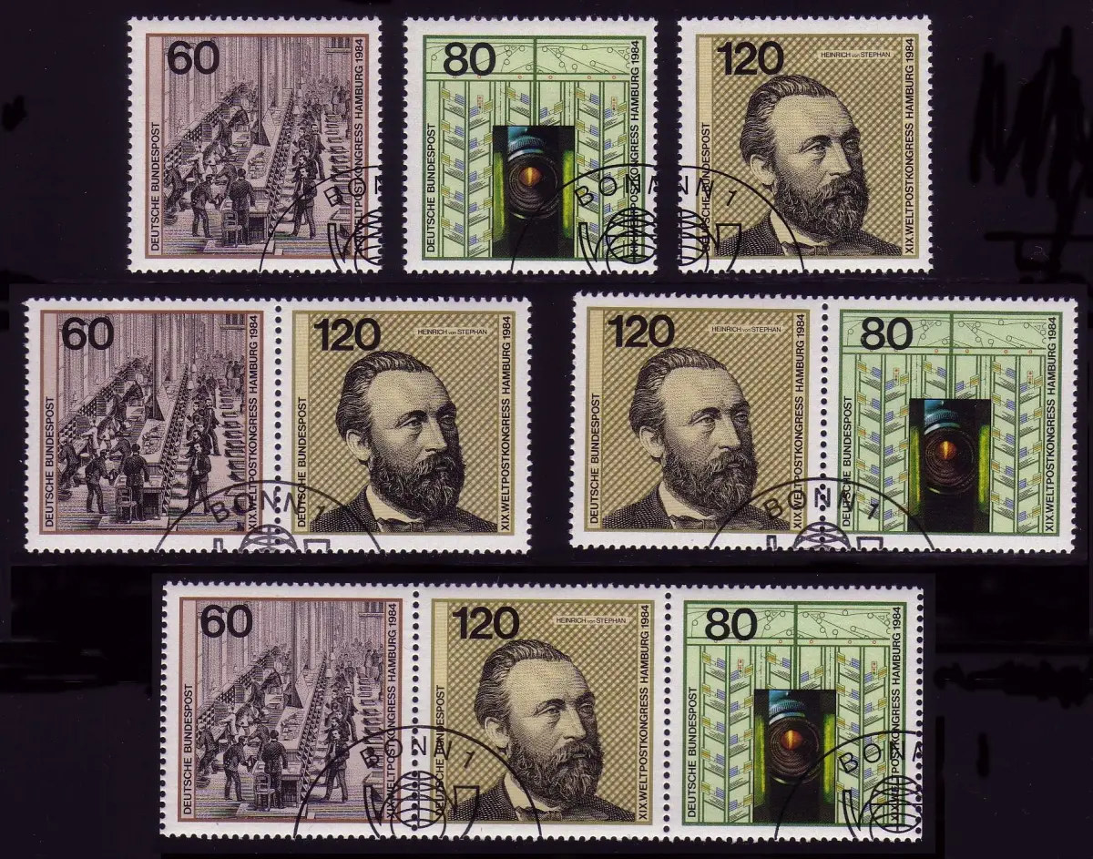 2x 2er, 1x 3er et 3 timbres individuels, avec cachet spécial de la date de début Bonn 18.6.1984 Numéro de catalogue: 1215-1217 Examen: original Référence produit: 50062121500301>Attention: Cet article est ou a été disponible plusieurs fois. L'illustration montre l'un de ces articles en un exemplaire. La marque livrée a uniquement les caractéristiques indiquées dans la description et peut donc différer de l ' image. Toutefois, en particulier pour les marques imprimées, nous nous efforçons de fournir l l\'article illustré. Si cela vous convient, veuillez nous le faire savoir.