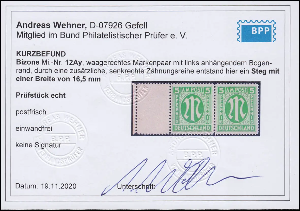 12ay AM-Post 5 p. paire serrée avec piéce gauche, résultat Wehner BPP