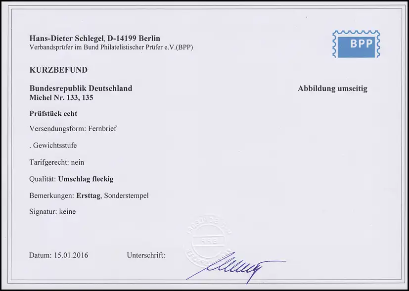 Seltener Ersttagsbrief der beiden am 20.12.1951 erschienenen Posthorn-Werte 40 Pf und 60 Pf jeweils sauber mit Ersttagssonderstempel Frankfurt 20. Dezember 1951 entwertet. Der FDC ist echt gelaufen, ist daher minimal fleckig laut Abbildung. Der Umschlag zeigt rückseitig einen Absenderstempel sowie einen kleinen relativ unbedeutenden Defekt an der Klappe. Der im MICHEL Spezial-Katalog 2024 mit 850,- Euro bewertete FDC wurde von Herrn Schlegel BPP mit einem Fotobefund versehen.